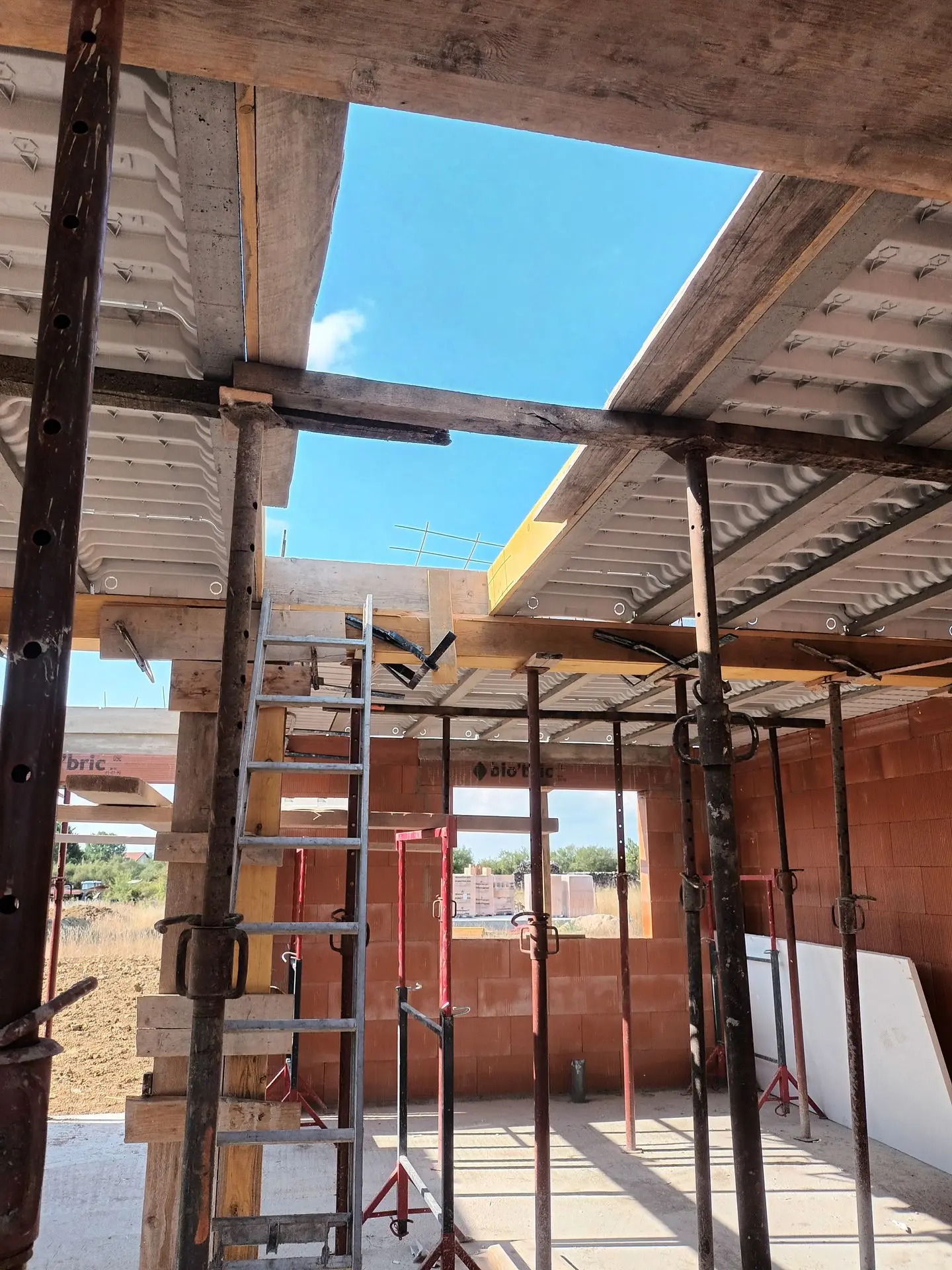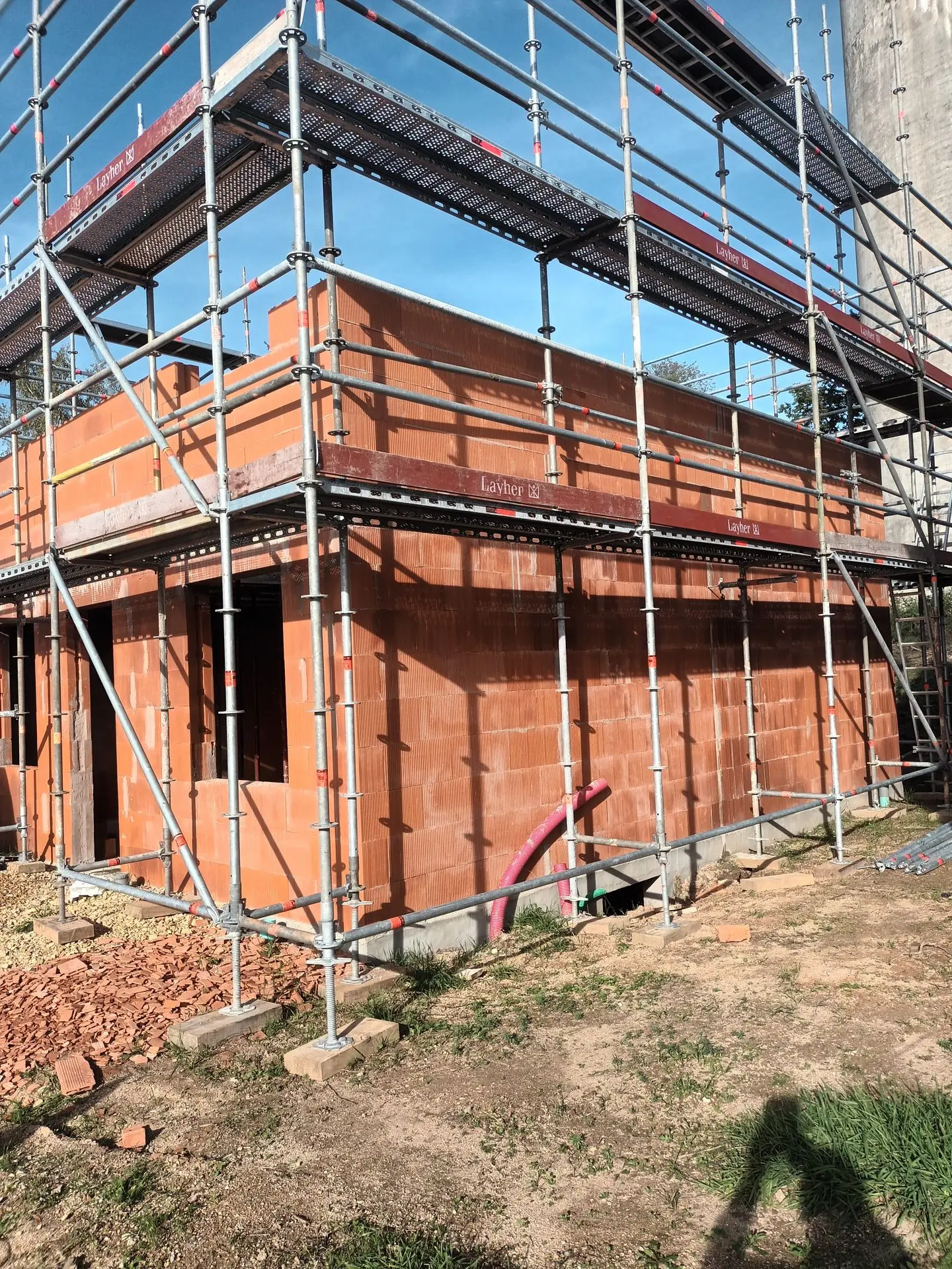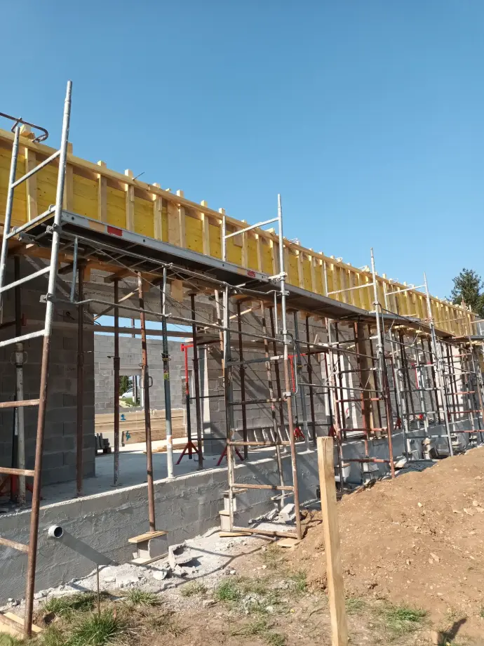 Murs en construction avec échafaudages et coffrage