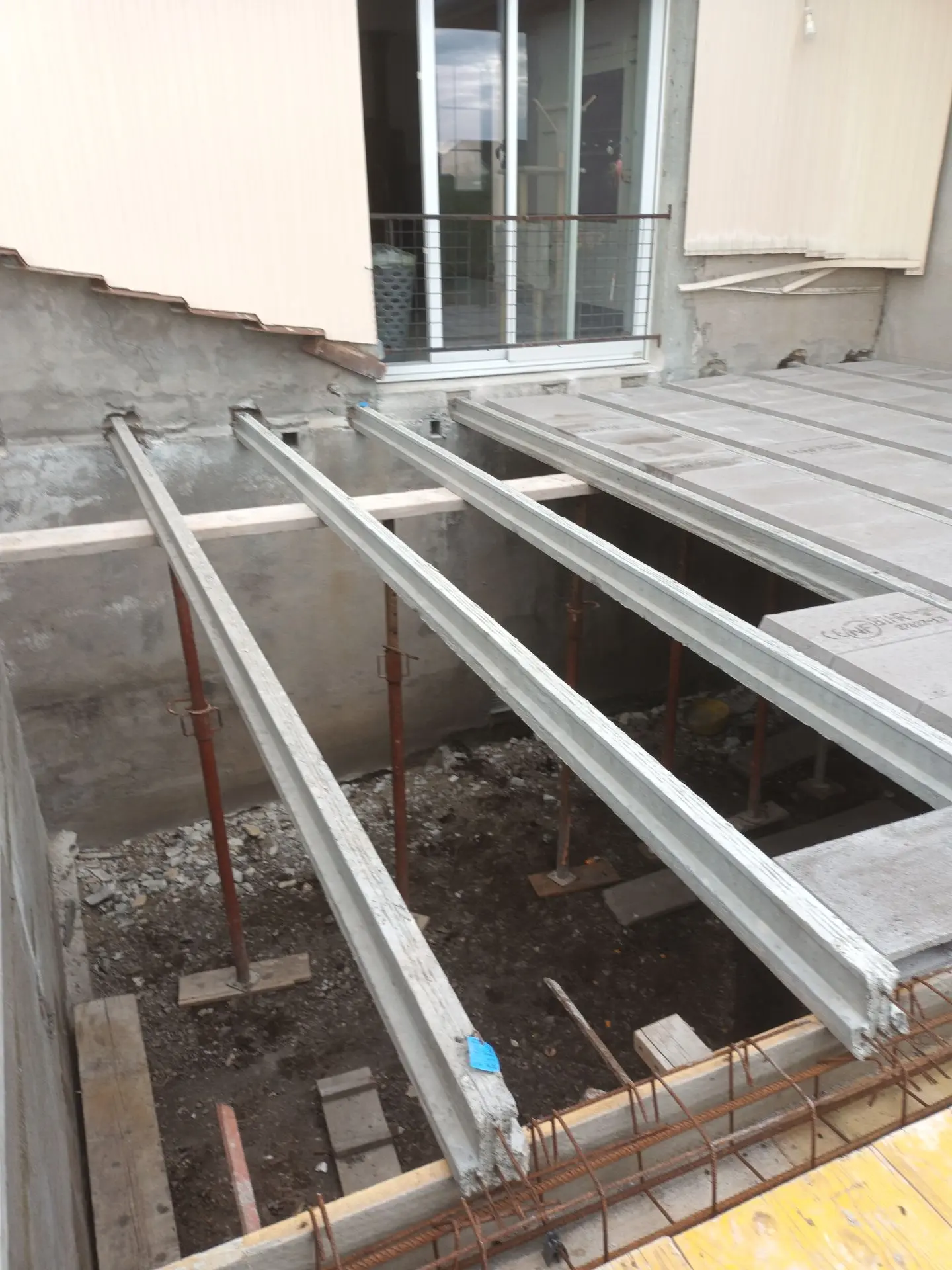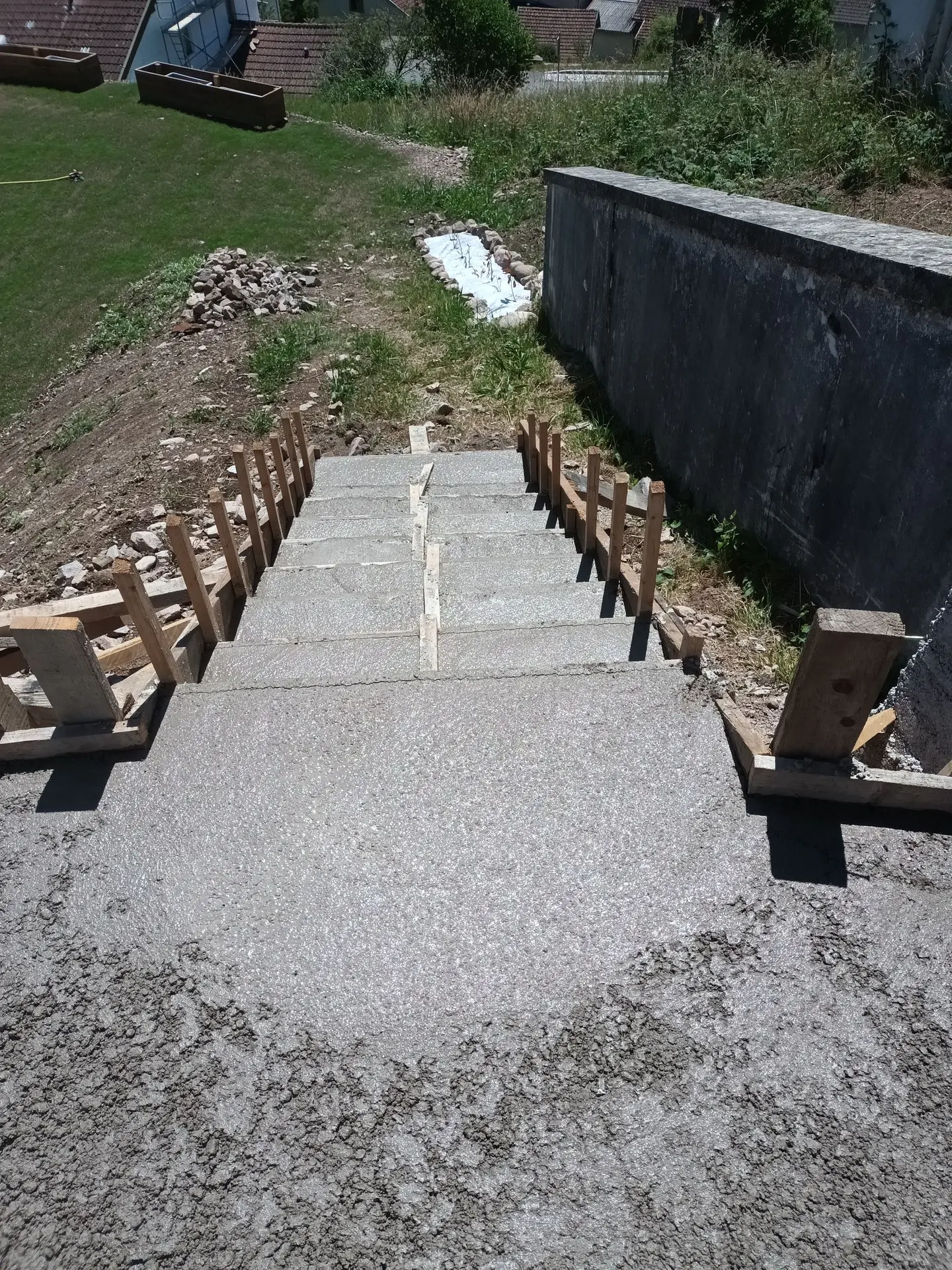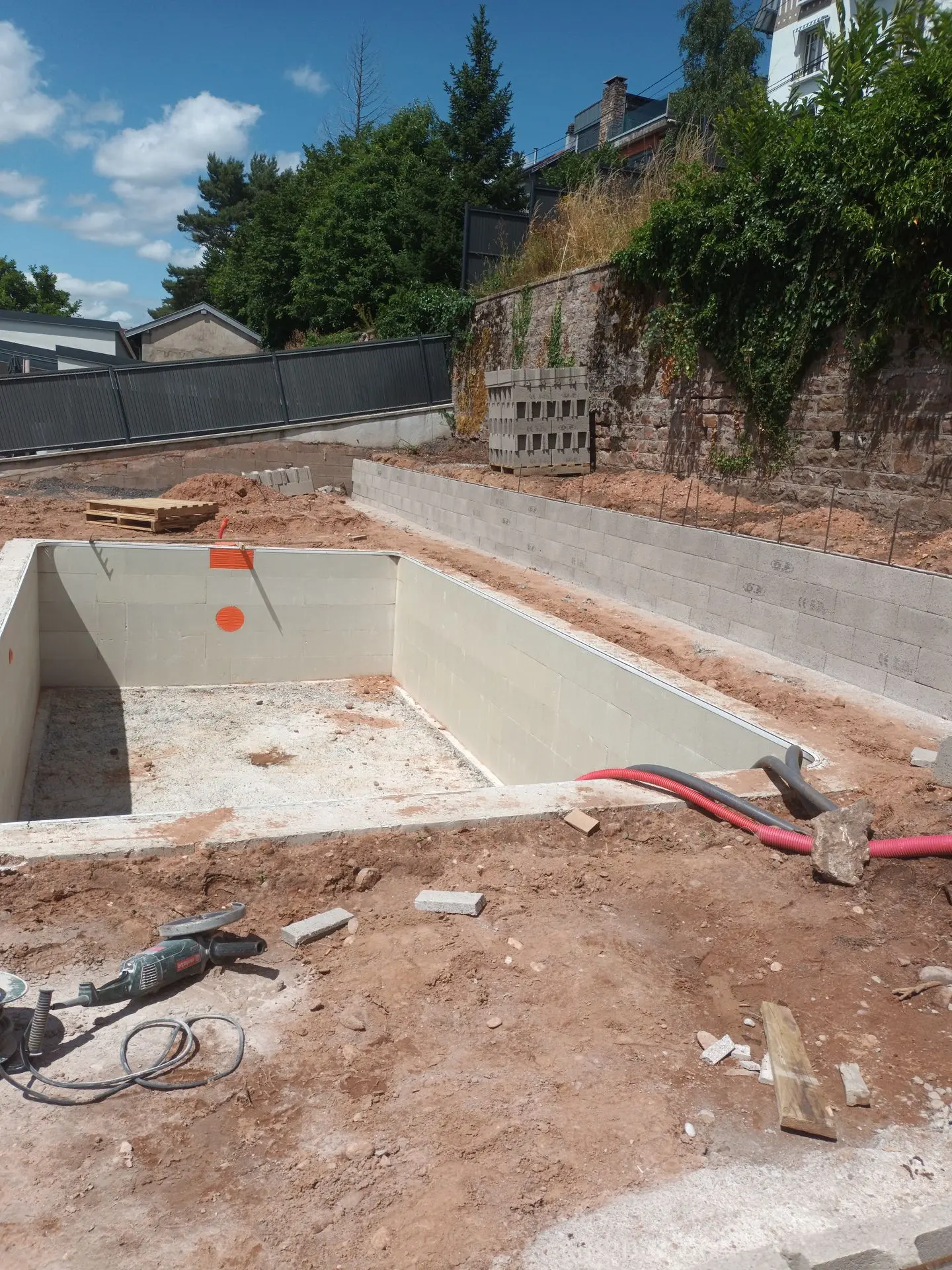 Murs en construction avec échafaudages et coffrage